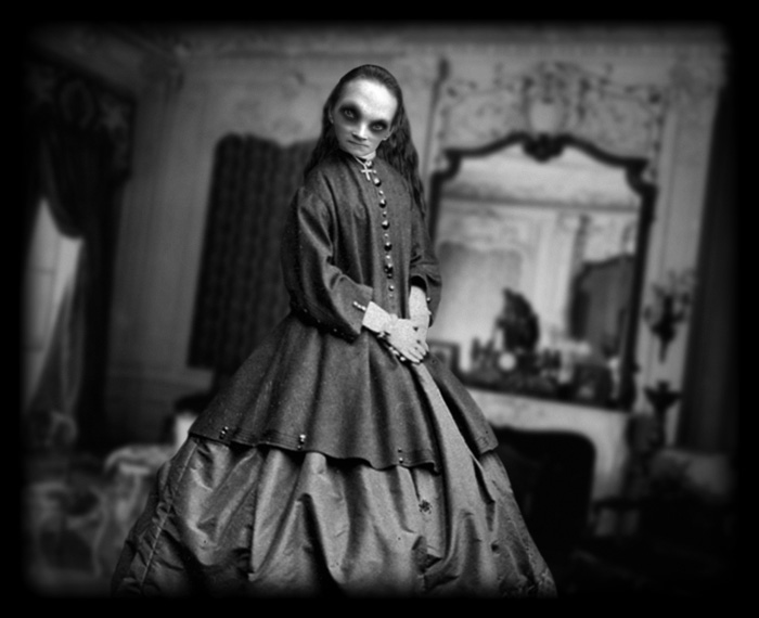 Her appetite sated for the moment, she went back to the house, climbed the stairs to her boudoir and had a good rest. When she awoke, she packed her clothes and a few books and keepsakes into two trunks. She dressed herself in a long, flowing black dress that came down to her ankles and an enormous black hat with a veil that hid her face.