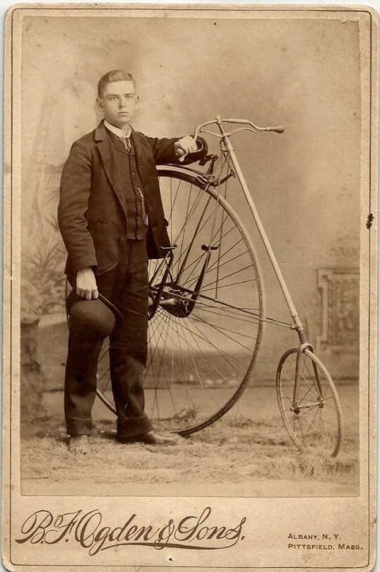 January 17, 2018January 17, 2018 by allen0997 1880s High-Wheel Bicycle A young man poses beside his penny-farthing bicycle in this studio portrait from the 1880s. Share this: Click to share on Facebook (Opens in new window) Facebook Like Loading... Related