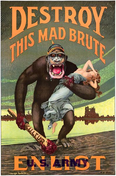 May 21, 2019May 21, 2019 by allen0997 Destroy This Mad Brute World War I propaganda poster shows the enemy as a ravening beast about to invade America. Share this: Click to share on Facebook (Opens in new window) Facebook Like Loading... Related