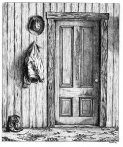 He sat in the chair and watched the rain. When he began to feel sleepy, he went back into the kitchen. Grandma and his mother were finishing up the dishes and Aunt Zeddie was still bawling. He went through the kitchen into the front room. Muffy was lying on the couch looking up at the ceiling, picking her nose. She seemed to be deep in thought and didn’t look at him. He went on through the front room and out the front door to the porch where the men were.